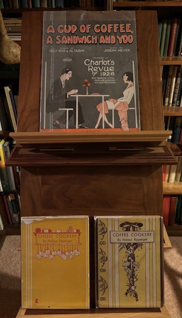 Today is National Coffee Break Day, along with National Cheese Lover’s Day. We can combine these and have a delicious day at the library. First is a copy of sheet music, written in 1925, ‘A Cup of Coffee, a Sandwich and you”. The music by Joseph Meyer, and the words by Billy Rose and Al Dublin. There is wonderful chorus: “the things I long for are simple and few. A cup of coffee, a sandwich and you.”