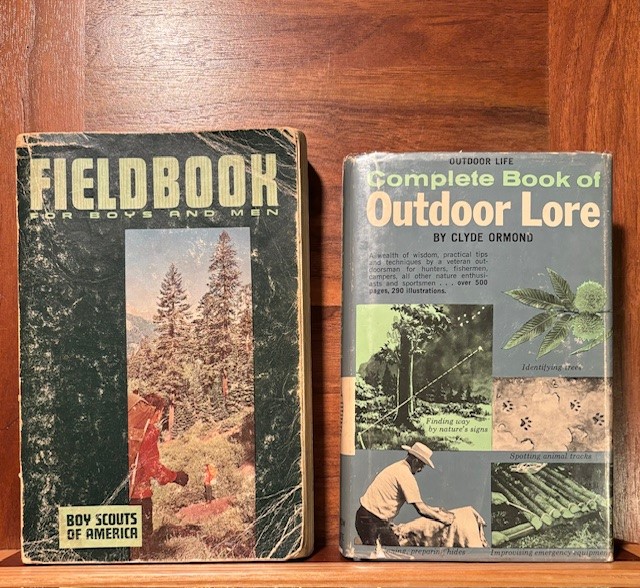 I also still have my “Field Book” from Scouting, along with my dad’s book “Complete Book of Outdoor Lore” by Clyde Ormond, 1964. I still have these to read when in my RV (a little more comfortable than winter camping on frozen ground in a tent.)