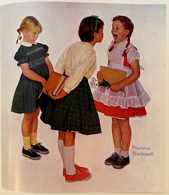 This book is what nostalgia is. Or at least how we want to remember the past. Norman Rockwell said he never drew “sordid or ugly.” He painted life “as he would like it to be.” But he was truthful during tumultuous times with some candid paintings. His paintings often hit home unpleasant truths. As we go through this enlightening book, it is amazing how many of these paintings are already locked into our brains. It is certainly a ‘bring back a moment’ time when we flip through them.