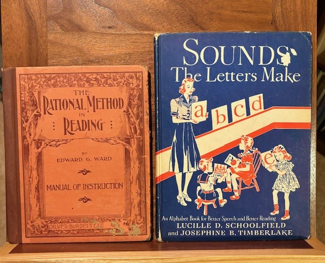 Here is an older book to help us, “The Rational Method in Reading”, by Edward G. Ward, 1896. The author tells us about “an Original presentation of sight and sound work that leads rapidly to independant and intelligent reading.” This Manual of Instruction for teachers, is to combine word and phonetic methods. He believes that by using phonetics, a student develops the habit of reading thoughtfully” He also says “the training of the ear in perception of phonetic blends’ will promote recognition.