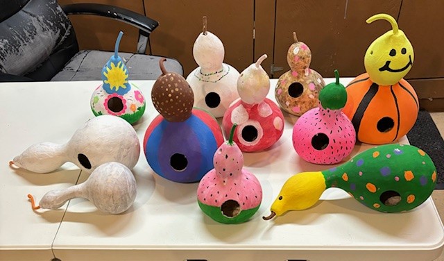 We are ready to put a final finish on our gourd birdhouses that Grandma and the grandgirls painted. They will be going up pretty soon in the back yard. Spring is almost here