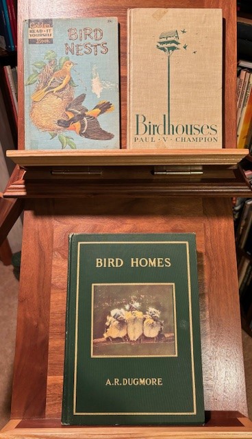 Also have “Birdhouses” by Paul V. Champion, 1961. This is a very interesting book that can be put to use. It is all about building birdhouses, what to use, measurements, and plans for 26 birdhouses. Some designs are for specific birds, and others can be suitable for various species, just enlarging the entrance holes. All is easily explained.