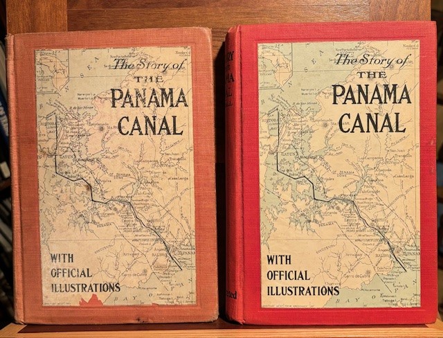 The reason is one I have discussed before, but this specific book has an added twist. These are more Salesman Dummy books, with the actual book next to it. As the program works, a book salesman would go door to door selling the book, using the salesman dummy as an incentive and visual aid. He would state the book is still being printed, and get in now for a wonderful deal. There would be one price for cloth binding, and another for leather binding. What makes this set remarkable, is that the salesman dummy book is the same for both books. You can use one side for “The Story of Mexico”, and then flip it around, and describe “the Story of the Panama Canal” This is the only example I have seen of a two sided salesman’s dummy book. The books published right when the Panama Canal was being finished; Book dealers wanting to capitalize on that event in 1914.