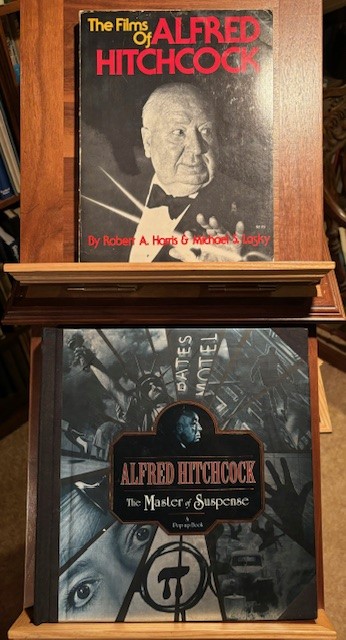 Today is Alfred Hitchcock Day, March 12th. I have several books to commemorate Alfred Hitchcock. I have always enjoyed seeing Hitchcock movies whenever I can, and this first book gives me some background to the movies, “The Films of Alfred Hitchcock” by Robert A. Harris and Michael S. Lasky, 1979. It is a good book about Hitchcock. There is a brief discussion of his life, then it breaks into the chronography of his movies. Each movie is given six or seven pages of photo shots, and written description of that movie. The last page of the book gives us comments of his cameos, and where to look.