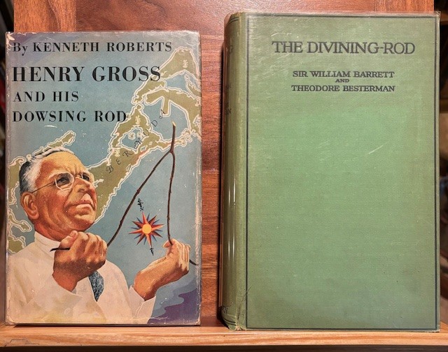 I was more intrigued than ever about divining or dowsing, so I began looking for more books. I found two. “Henry Gross and His Dowsing Rod” by Kenneth Roberts, 1951. This is a biography of a man who found water all along the east coast, and even was the first man to find fresh water in Bermuda. The second book “The Divining Rod” by Sir William Barrett and Theodore Besterman, 1926, is a complete history of water finding throughout the ages.