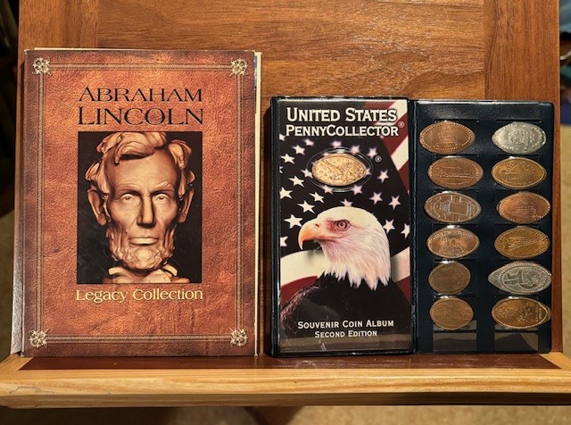 I have “Abraham Lincoln Legacy Collection” which tells of the history of Lincoln pennies, complete with actual pennies of each Lincoln style. The pennies, and a Lincoln commemorative $1 coin are mounted in plastic so can see both sides of each coin. I bought this at the Lincoln Museum in Springfield. In 1909, Lincoln appeared on the penny. The back side was sheaves of wheat until 1959, when the backside became the Lincoln Monument. In 2009, there were four different backsides to honor Lincoln’s 200th birthday. In 2010, the backside was permanently changed to the ‘Union Shield.’ In 1943, pennies were made from steel because of copper shortage. In 1982, pennies were made with a zinc center. Before that, they were solid copper.