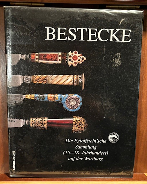Another part of Wartburg history, is their museum of cutlery that we walked through. I have the book “Bestecke” “(Cutlery) from the 15th to the 18th century in Wartburg Museum” by Jochen Amme, 1994. It gives us the history of forks and knives-and a few spoons, along with photographs of the collection.