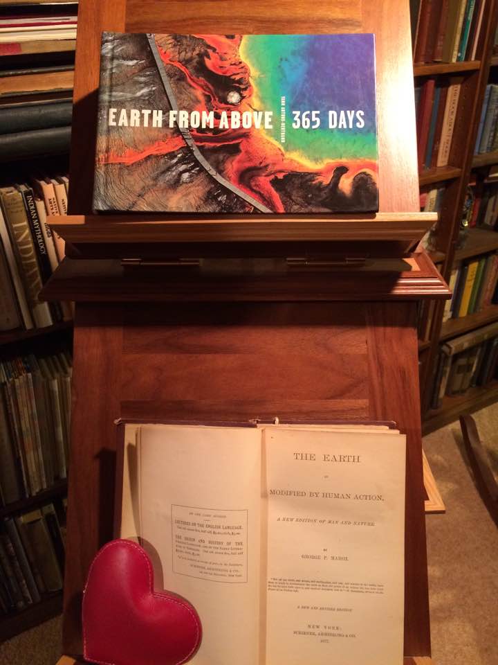 In the library today, is a very good, albeit early example of this, “The Earth as Modified by Human Action” by George Marsh, published in 1877. It is a superb book observing what man has done to the environment through the years. Oh, and this copy was printed almost 150 years ago…and is second edition. The original came out in 1874. This is a very readable and thought provoking book. One of his big concerns is using up our wood supplies.