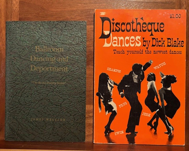 I also have ‘Discothéque Dances” by Dick Blake, published in 1965. There are no shoeprints to follow, but actual photographs. They may be a little cheesy, but hey, we are dancing the Watusi, the Frug, the Chicken, the Mashed Potato, on and on with the newest dances.