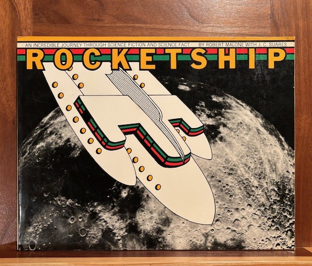 “Rocketship: An Incredible Journey through Science Fiction and Science Fact” by Robert Malone, 1977. This is a great book about rockets through history, and through science fiction. From a Leonardo da Vinci rocket-like missile, to Neil Armstrong, to “2001 A space Odyssey”, one can enjoy what is real and what could have been. I have had this book since it came out-43 years ago.