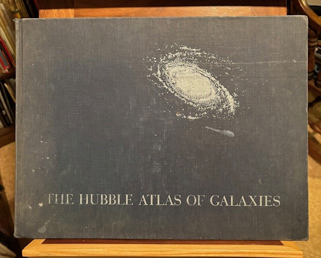 “The Hubble Atlas of Galaxies” by Allan Sandage, 1961. Bought this from book sale Waukegan Public Library-discarded book. This is an atlas of different galaxies that Dr Edwin Hubble had photographed and classified. Looking through the pages of pictures, one really could get the sense of ‘we are not alone.’ While this book is now outdated, and the Hubble Space Telescope (named after Edwin Hubble) has generated phenominal new photographs, the black and white galaxies in this book are still eerily thought-prevoking of what else is out there.