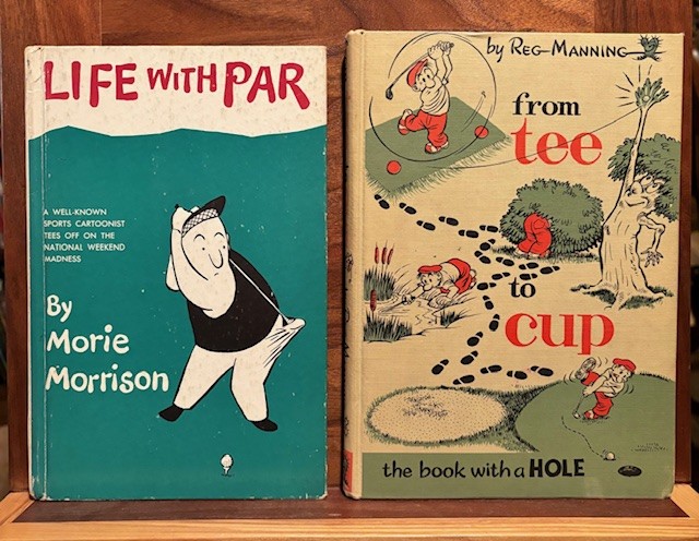 May 10th is National Golf Day. By a stroke of luck and as par usual, I have several books on golfing. Let me address the first one…”Life With Par” by Morie Morrison, published 1958. This book is about two golfers Sandy Sandtrap and Doc Divot and their adventures and frustrations in golf. It is cartoon drawings with captions.