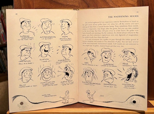 I won’t putter around but will slice right in to “From Tee to Cup, the book with a Hole” by Reg Manning, 1954. It also is full of illustrations, and has very interesting commentary on golf.