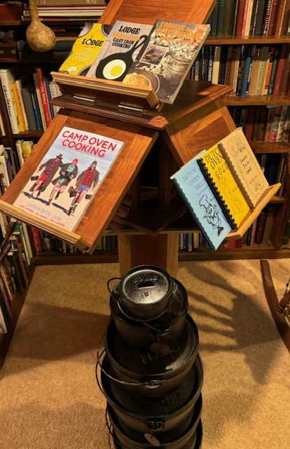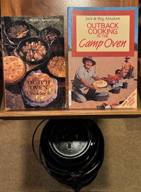 Two books that I use readily are “World Championship Dutch Oven Cookbook” by Juanita, Mike, Pat, Wallace Kohler and Pat and Dick Michaud, 1998. Have 11 recipes marked for easy cooking reference.