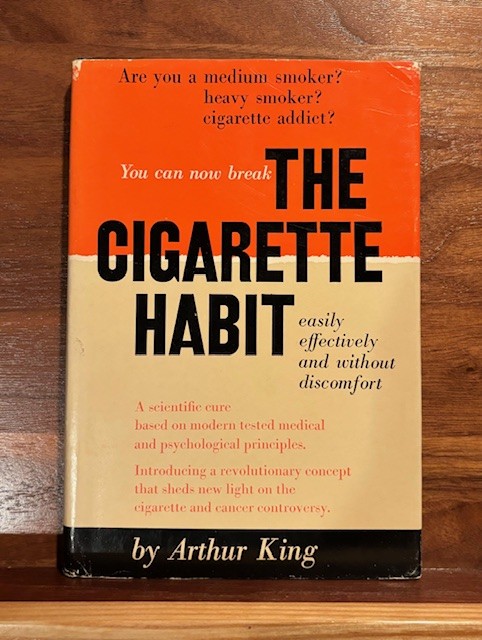 I also have the book “You can now break The Cigarette Habit” by Arthur King, 1959. It gives a plan for quitting cigarettes. It is an interesting program if you really want to quit. It begins with 21 days before quit day. First thing is to change your cigarette brand. Second thing is to eliminate smoking before breakfast and one hour before bed. For the morning routine, have a glass of water or juice when you wake up. The idea is that your “Will Power’ is more vulnerable then.