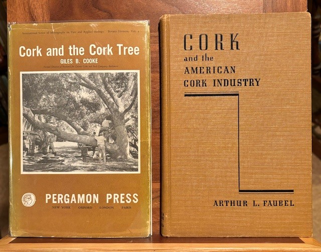 First up is “The Cork” by Mamuel Alves De Oliveira and Leonel De Oliveira, 1999. It was first published in Portugese, and then into English. Most cork comes from Portugal. I have the English version, and it is a nice general book to begin a tour of Cork Oak trees. Not only are there beautiful photographs, it has a good basic history of cork, and how harvested. They peel the bark off of the tree (much like shearing a sheep), and then can re-peel on average nine years later. I also like that this book has a slipcase that is made from cork. This would be a great book for anyone’s the library, beautiful inside and out. I however, keep looking for more books, older and with more details.