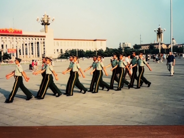 A few years back, I was at Tiananmen Square. One day I was making a little fun of soldiers marching across the square, following behind them. Later that evening we went back to the square. It is very busy in the evening, kids were flying kites, and a lot of chinese families were milling around, enjoying the cooler nights. We went several nights to the square, it was the last place we would visit every day. We enjoyed watching everyone having a good time.