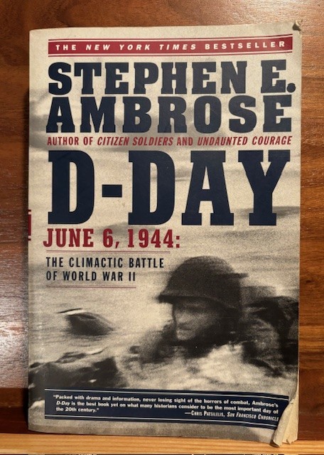 I also have the book “D-Day June 6, 1944: The Climatic Battle of World War II” by Stephen E. Ambrose, 1995. This is the best account of the battle and war one will ever read. Ambrose used the interviews of over 1,400 American, British, Canadian, French, and German veterans. Ambrose is also the President of the National D-Day Museum in New Orleans. As Winston Churchill said, “The most difficult and complicated operation ever to take place.”