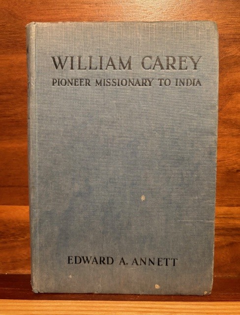 I have the book “William Carey, Pioneer Missionary to India” by Edward A. Annett, 1932, published by the National Sunday School Union. It is part of a collection I have all published by the same group. Each book is about a famous missionary, or famous person to look up to. They also printed stories of people who had good morals, or handled challenges in an uplifting way.