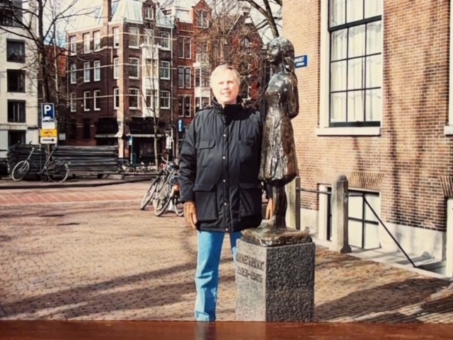 This is a statue of Anne Frank in a small square just around the corner from the house. What was very sad, is that just before I had the picture taken, there were civil servants cleaning graffiti on the ground in front of the statue. Hate was still being painted and spread in the area.