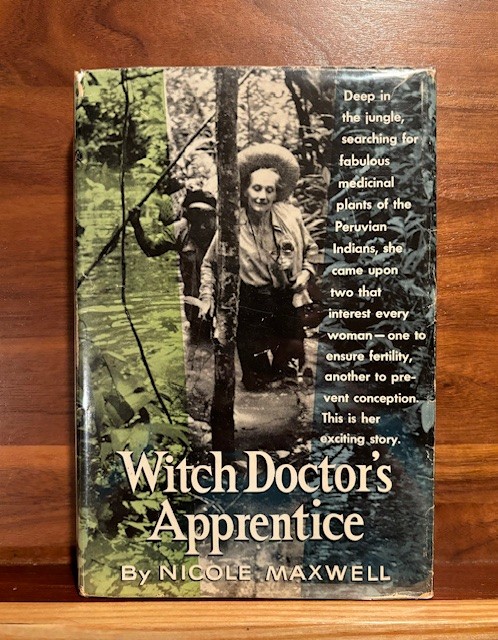 Then I have “Witch Doctor’s Apprentice” by Nicole Maxell, 1961. The title goes on to say “Deep in the jungle, searching for fabulous medicinal plants of the Peruvian Indians, she came upon two that interest every woman-one to ensure fertility, another to prevent conception. This is her story.”