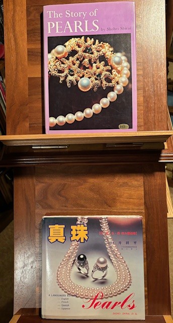I have two books on pearls by one author. The first is “The Story of Pearls” by Shohei Shirai, published in 1970. This is a nicely done book that explains the whole culture growing and harvesting pearls, and then processes of making into jewelry.