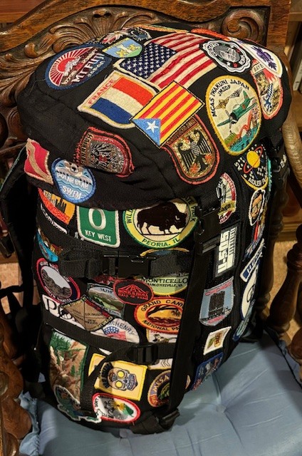 I just retired this traveling bag, after perhaps 108 patches. Been around the world with it, sewing every patch myself. I may have spent $500 on the patches. The pack was an even $60, a long, long time ago. This bag can tell a story of travel. They may not be pretty sewing lines, but I sure threaded the needle for adventure.