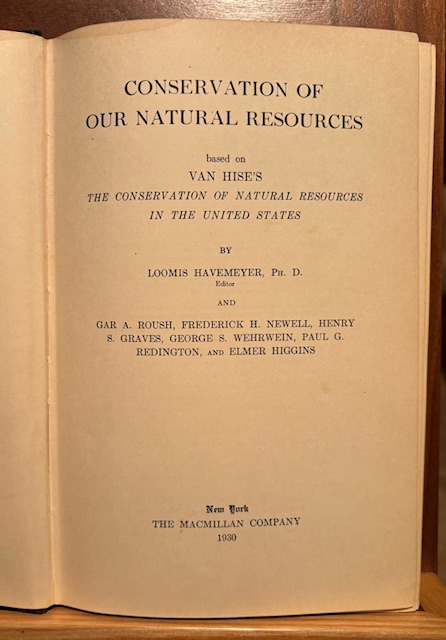 My first book is “Conservation of Our Natural Resources” by Loomis Havemeyer, published 1930. The author quotes in the beginning of this book: