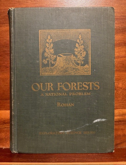 My second book is Our Forests, a National Problem” by Ben. J. Rohan, published 1929. This is one of those hard to find books. This book was written to use in secondary schools, to help address the issues the author has written about: “America is facing a crisis. Her virgin forests are disappearing. She is threatened with a wood shortage. There is still a chance to avert a timber famine for us and those who follow. This little book is sent forth to inform you of the condition and importance of our forests. It is hoped that from its pages you will draw enough information and inspiration to help America solve her forest problem.”