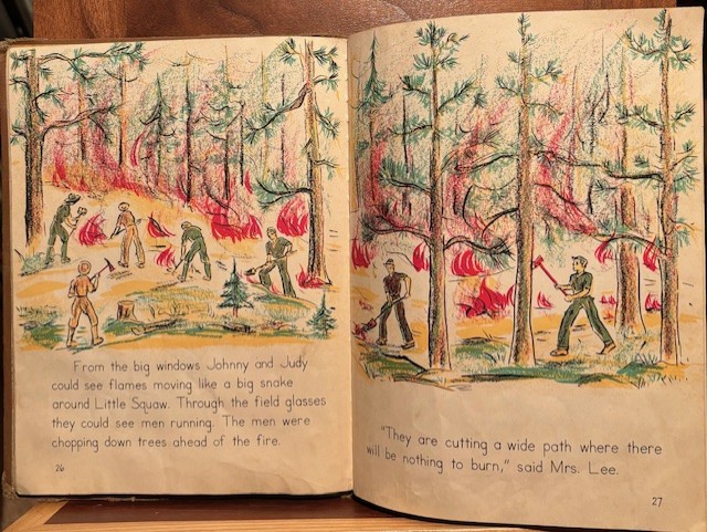 I want to move forward with a kids book, “The Little House on Stilts” by Lucia Patton, printed 1948. This is a book about a lookout tower and forest rangers.