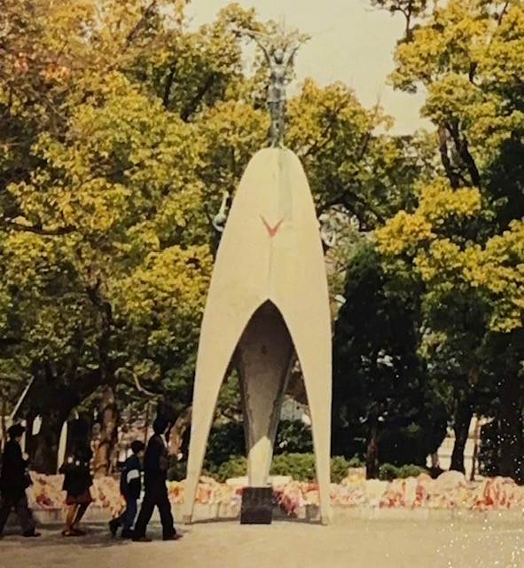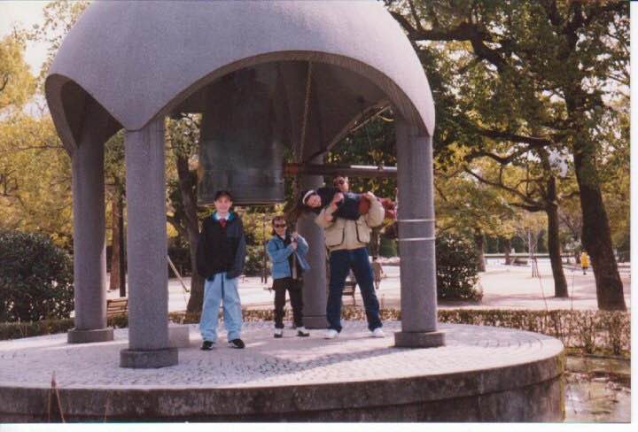 Twenty or so years ago, I visited Hiroshima. I have a few pictures from there. The first is at Ground Zero. The building behind me is the former Hiroshima Prefectural Commercial Exhibition Hall, now known as the Genbaku Dome. It is said to have survived because the blast was directly above it, and the concrete dome acted like an umbrella, directing much of the energy around it.