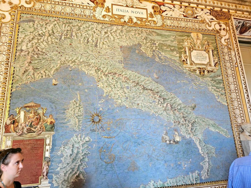 There are 40 large wall panels of maps in this gallery. The maps were painted by Friar and Geographer Ignazio Danti. He spent three years to paint them.