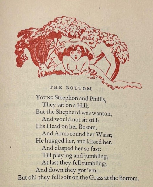 My favorite poem here is “The Bottom” a rather Jack and Jill-like story, with Strephon and Phillis. I will give you the first stanza: