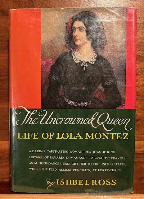 How do all of these books fit together? And, why bring them up today? Is there some connection with all of these players? Well, first let me add another book into the mix: “The Uncrowned Queen, Life of Lola Montez” by Ishbell Ross, published 1972.
