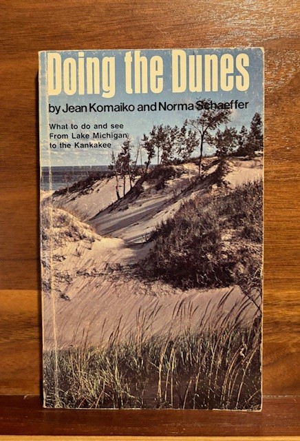 But I thought today, let’s talk about closer beaches. But, they cannot be a pond or small lake beach. At a real beach, you can listen to the waves. Let me show you this old paperback book “Doing the Dunes” by Jean Komaiko and Norma Schaeffer, published 1974. This is a book about the Indiana Dunes National and State Parks, and surrounding areas. There are wonderful dunes to walk along and explore.
