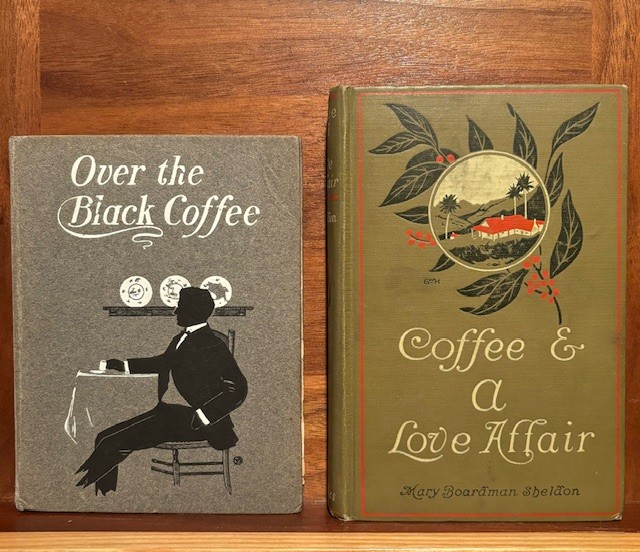 The next book is “Over the Black Coffee” compiled by Arthur Gray, published in 1902. This book while also giving some interesting facts obout coffee, it is also meant to be read for enjoyment. The author here states: “Tea has always been, and will always be, a soft soothing, purring, gossipy decoction for gentle women and men of mild power and peaceful walks. Coffee, on the other hand, has ever been associated with the robust, daring, and the adventurous.”