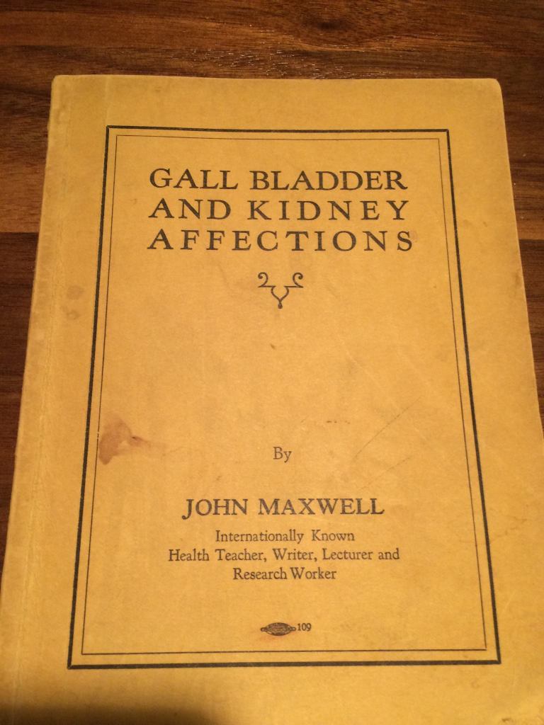 October 1st is World Vegetarian Day. I have for that event, the book “Gall Bladder and Kidney Affections” by John Maxwell. 1931. It is a hard to find book about the author and health-man John Maxwell. He began his vegetarian crusade in Chicago. He also talked about the dangers of smoking and drinking.