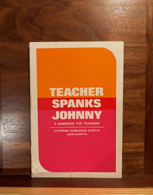 In case one has that really obstinate student, I have the book “Teacher Spanks Johnny-a Handbook for Teachers” by Catherine Humbargar Rovetta and leon Rovetta, published 1968. This is actually not a handbook on how to use corporal punishment in schools but more of the laws, back when a teacher could use corporal puunishment.