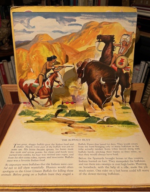 I also have a pop-up. “Indians” by E. Joseph Dreany, published in 1951. This is part of a two book set, the other being “Coyboys”.
