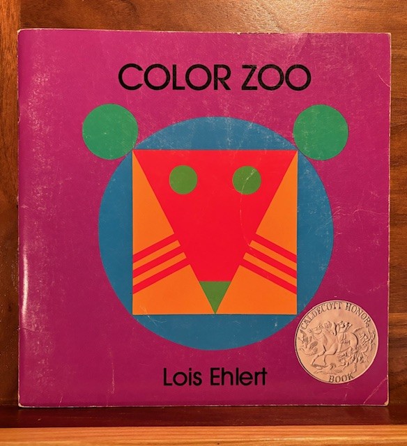 This next book was one from my Mom’s classroom when a teacher. She used this book to take shapes and colors to have kids make various animals. It is a pretty good aid, called “Color Zoo” by Lois Ehlert, 1989.