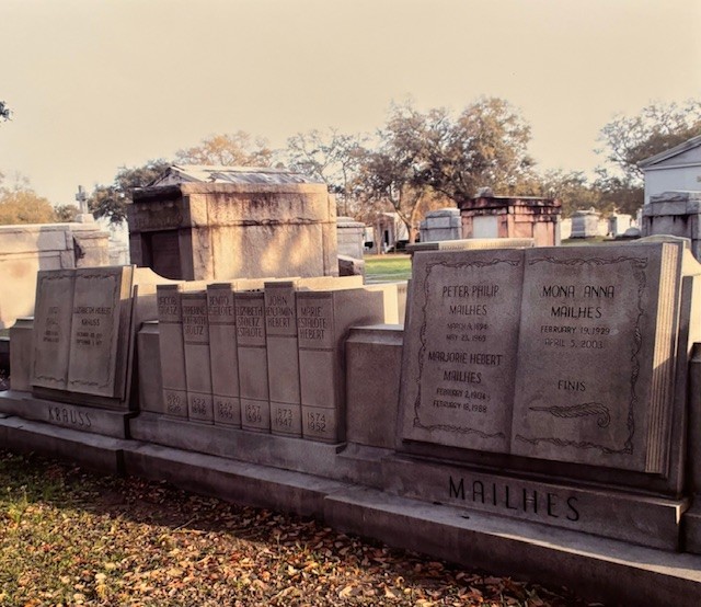 Lastly, is a family plot of the Krauss and Mailhes family. Each person’s tombstone is a book. There is a “bookshelf” of family buried.