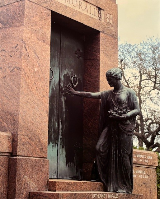 Thanks for pointing out the faulty research on this mauseleum. I had forgotton to write down the names when I took the picture at the cemetery. Then, when researching for the Weeping Angel. I mistakenly said that this was the grave of Emelyn and William Wetmorel Story (Even forgot his last name). Wetmorel Story was an American who moved to Italy. He was an artist. When his wife died in 1894, he made this statue. He died in 1895. That statue is outdoors in the Protestant Cemetery in Rome, Italy.