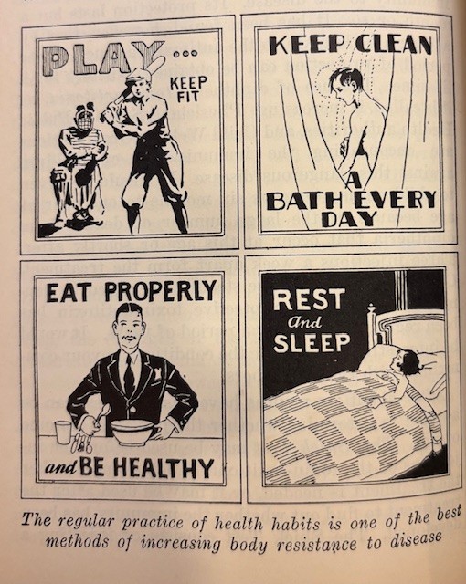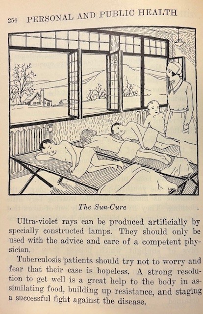 Many topics in these health books are outdated, like the sending of children with Tuberculosis to a sanitarium, and use sun and ultra-violet rays for a cure.