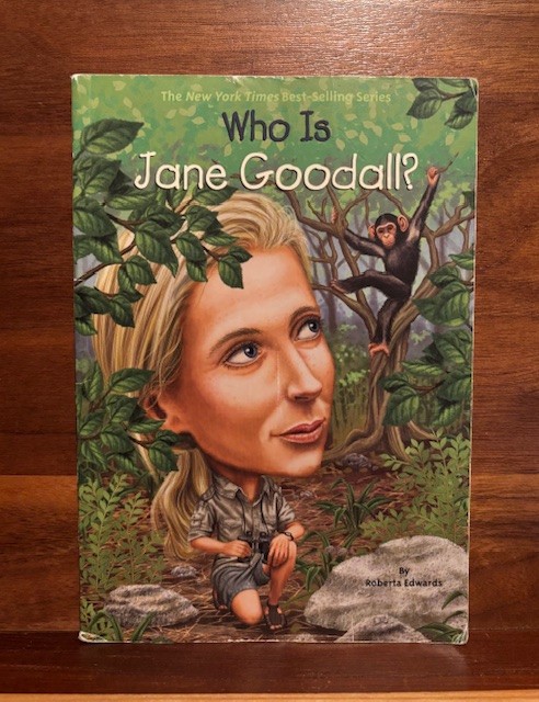 But then we can evolve into other books like “Who Is Jane Goodall?” by Roberta Edwards, 2012. Jane Goodall went to Africa in 1953 to work with Louis Leakey. He helped her to develop studies on chimpanzees and their behaviour. At 90, she is the foremost authority on chimpanzees in the world.
