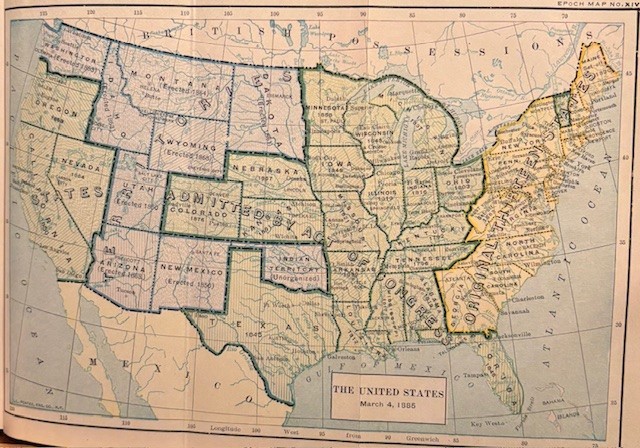 Wilson wrote much about the country as North and South compromises become unstable, Slavery issues with states – and then also territories, Texas, new lands after the Mexican war, the Civil war, and Reconstruction. As well as this being a good read, there are many interesting fold out colorized maps.