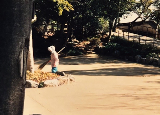 A few years ago, a good friend and I, visited Japan to visit my sister, and tour around the country. One early morning, we went to Iwakuni Castle. It was built in the year 1608. The castle was torn down, and rebuilt several times in history. It was very quiet the morning we were there, just us two tourists. The only other person was this old lady sweeping the castle courtyard. She had a handmade broom that looked just like the one in “The Widow’s Broom” story.