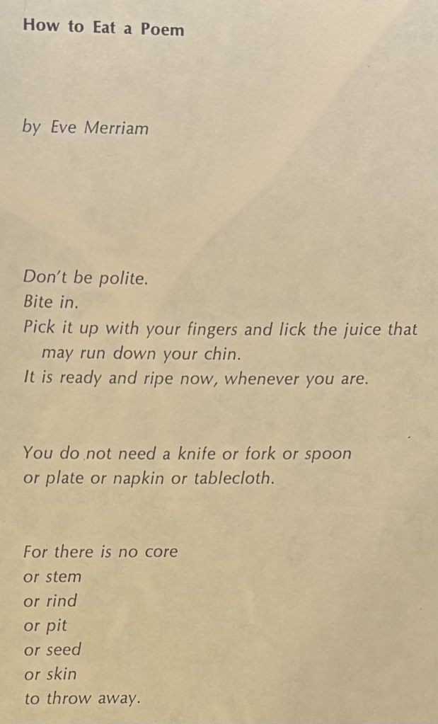 This next book has been important to me since high school. It is “Reflections on A Gift of Watermelon Pickle…” published in 1967.