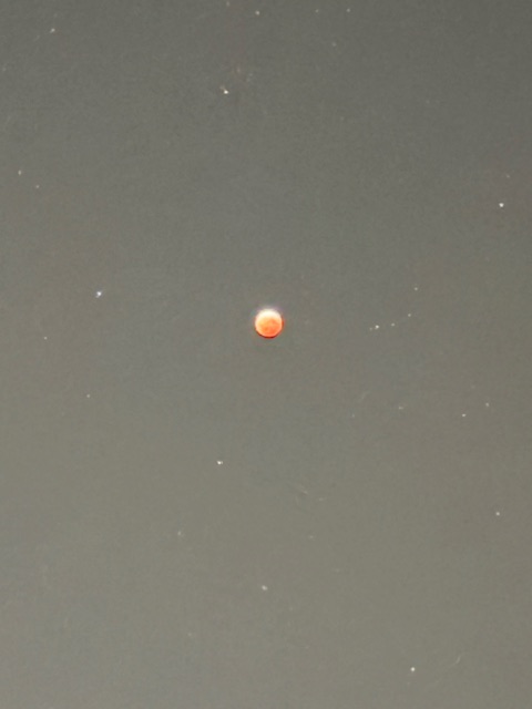 After I read the book, that silvery light lead me to the door. It was time to see the Lunar Eclipse, about 1:30 in the morning. I watched the moon slowly be covered by the Earth’s shadow. The moon became darker and darker, and was finally cast with a reddish glow. I was able to take this picture.