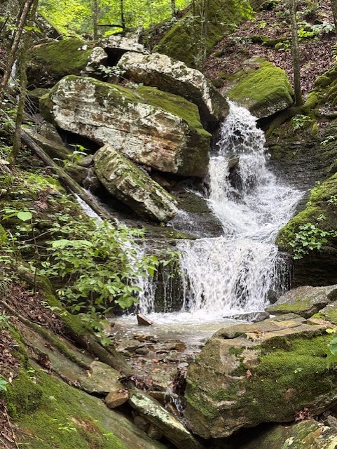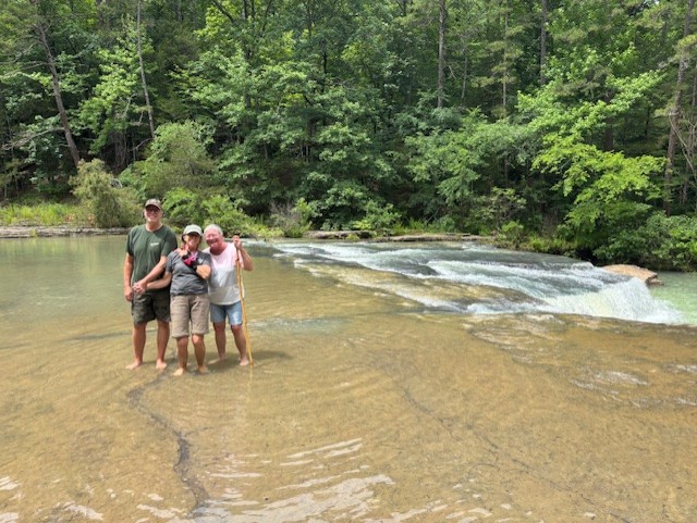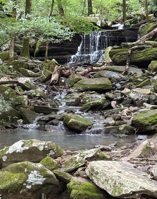 The last part of our trip in Arkansas was to spend several days in the Ozark National Forest. It was the most adventurous. We were going on a waterfall search trip. I used the book “Arkansas Waterfalls” by Tim Ernst. The author had written about 200 waterfalls found in Arkansas. He gave detailed instructions on how to find the waterfall, how difficult the hike is, and a picture of each waterfall. He included himself in each photo for size.
