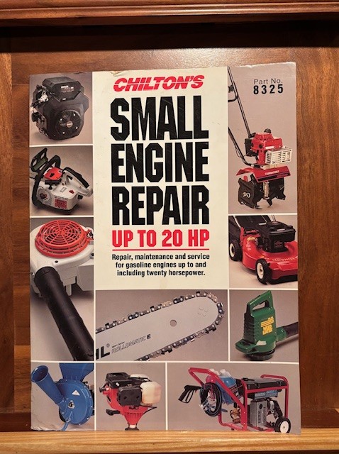 A few weeks past, my mower was causing some problems-stopping right after I had started it. I pulled out from the small library of books in my garage, the Chilton’s guide for small engines.